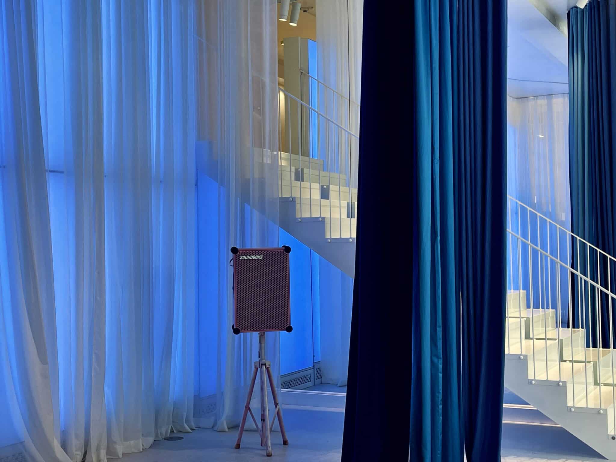 Med en lysboks på hele 32 kvm der udgør hele bagvæggen af lokalet sikres maksimalt blikfang til Arne Aksels flotte showroom i Vognmagergade.