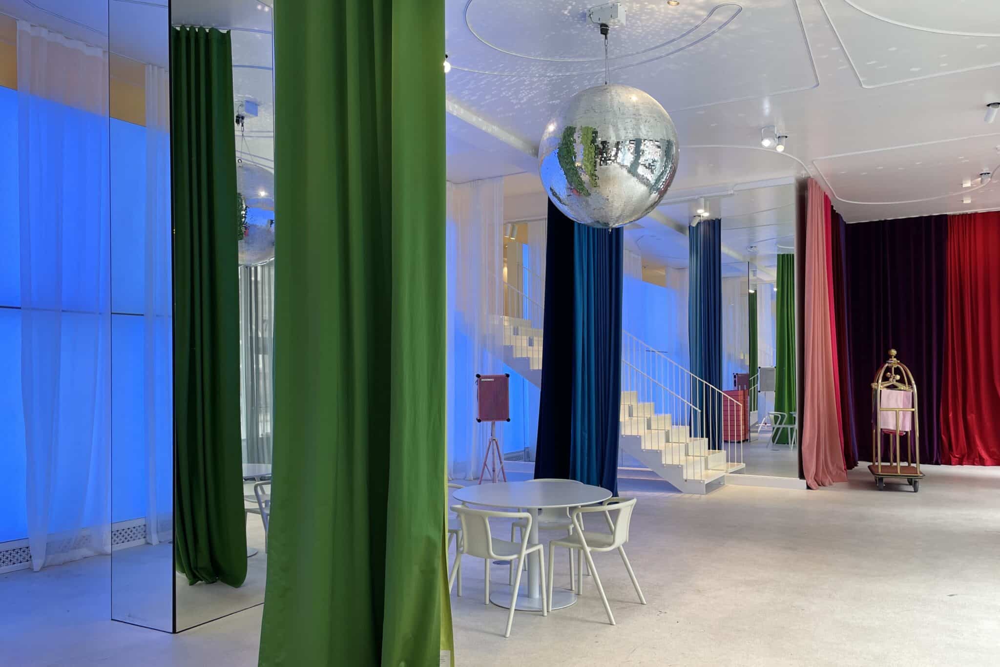 Den bagbelyste væg kan ændre farve, og showroom’et er derfor altid en ny oplevelse for de besøgene kunder.