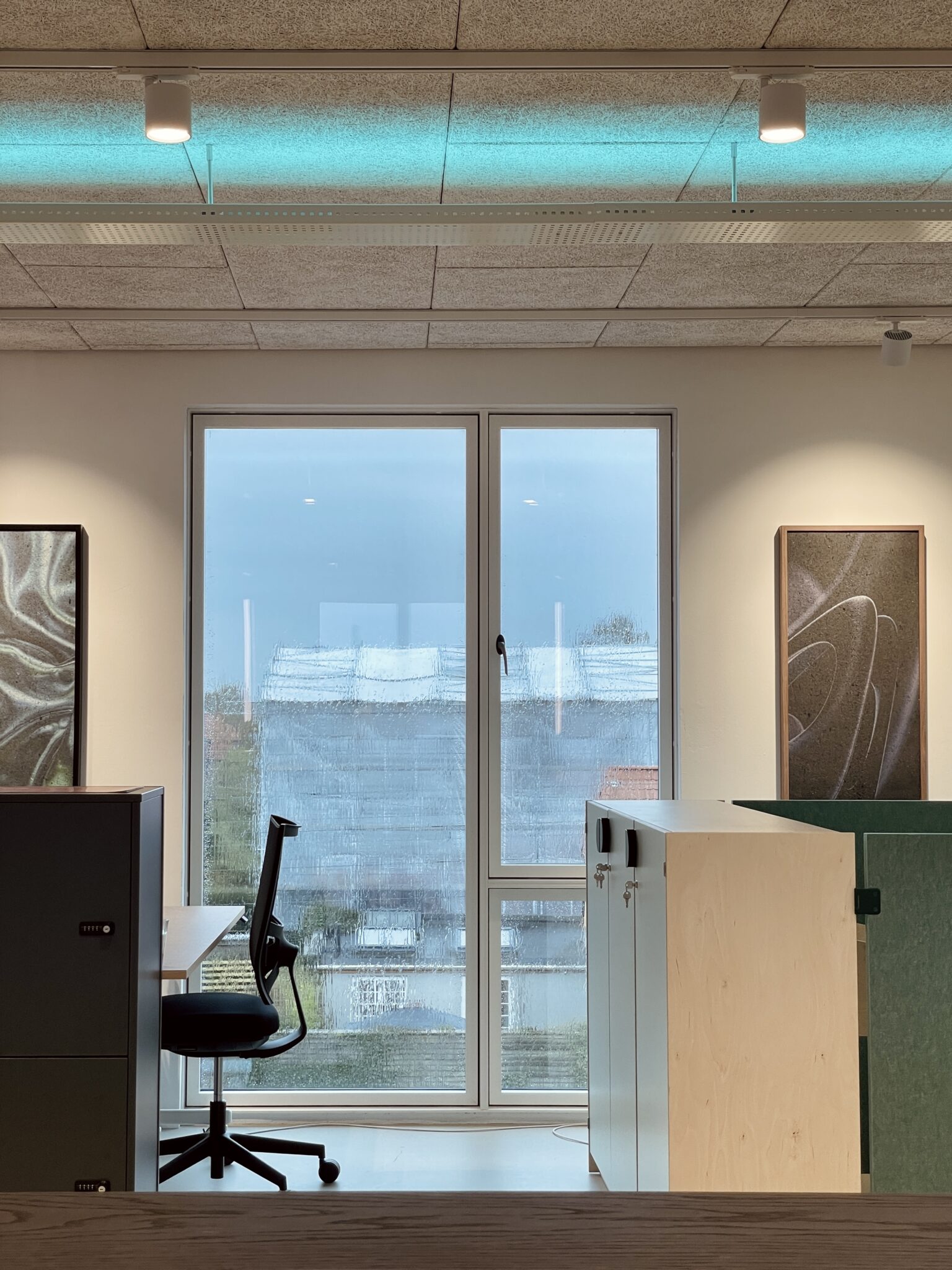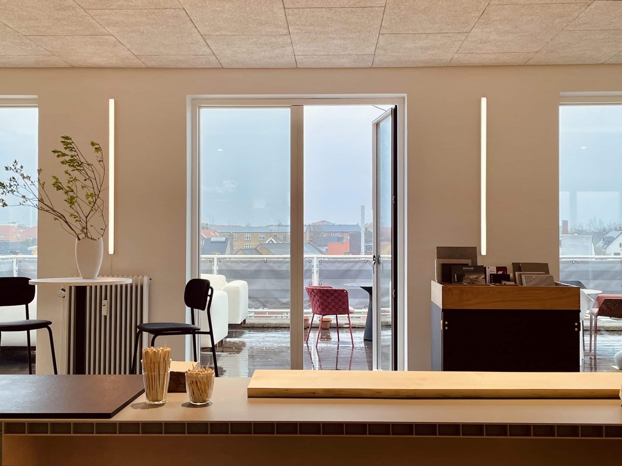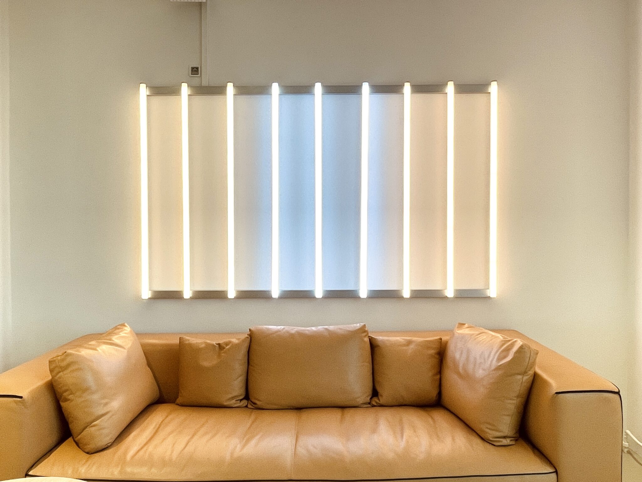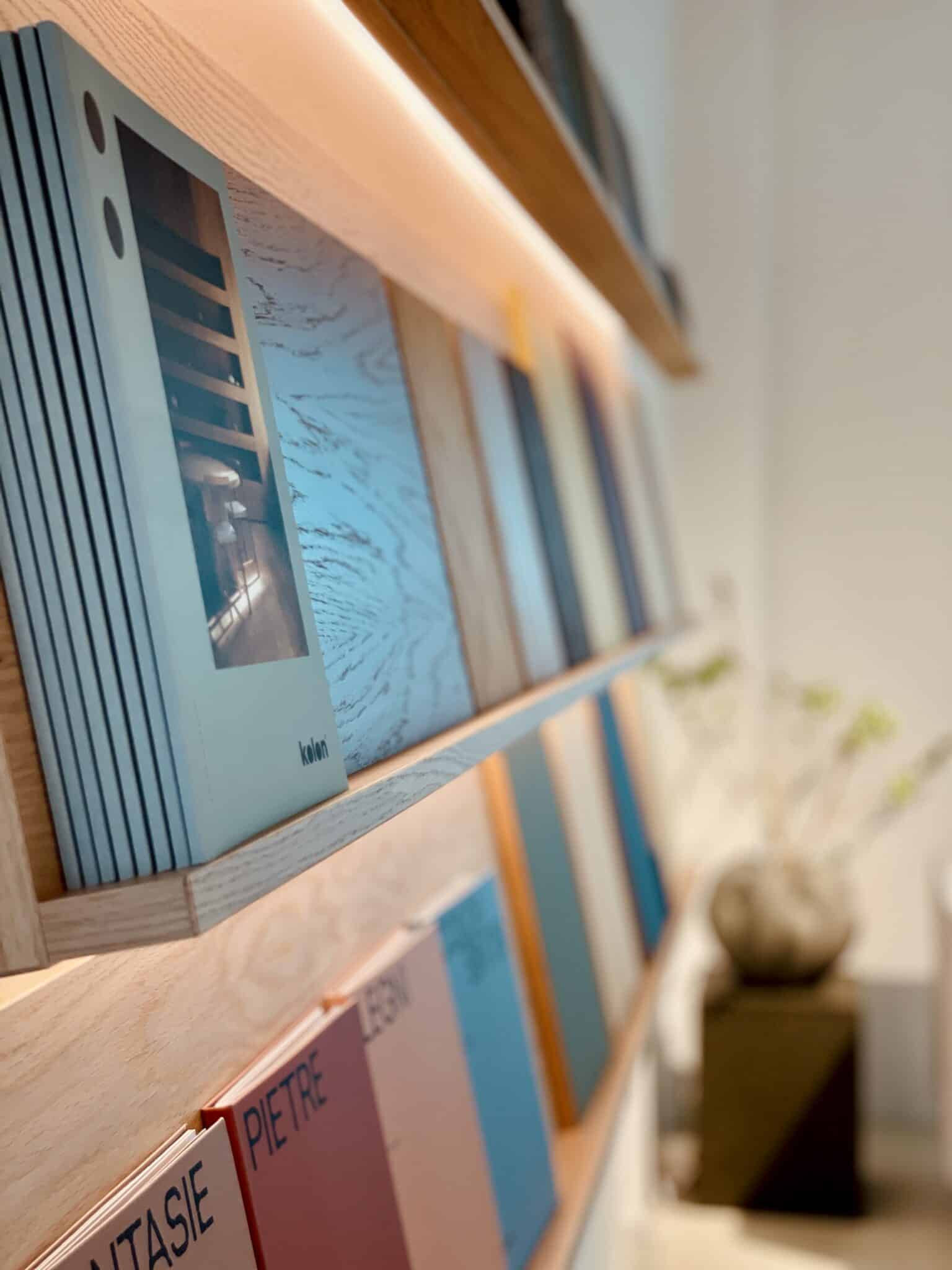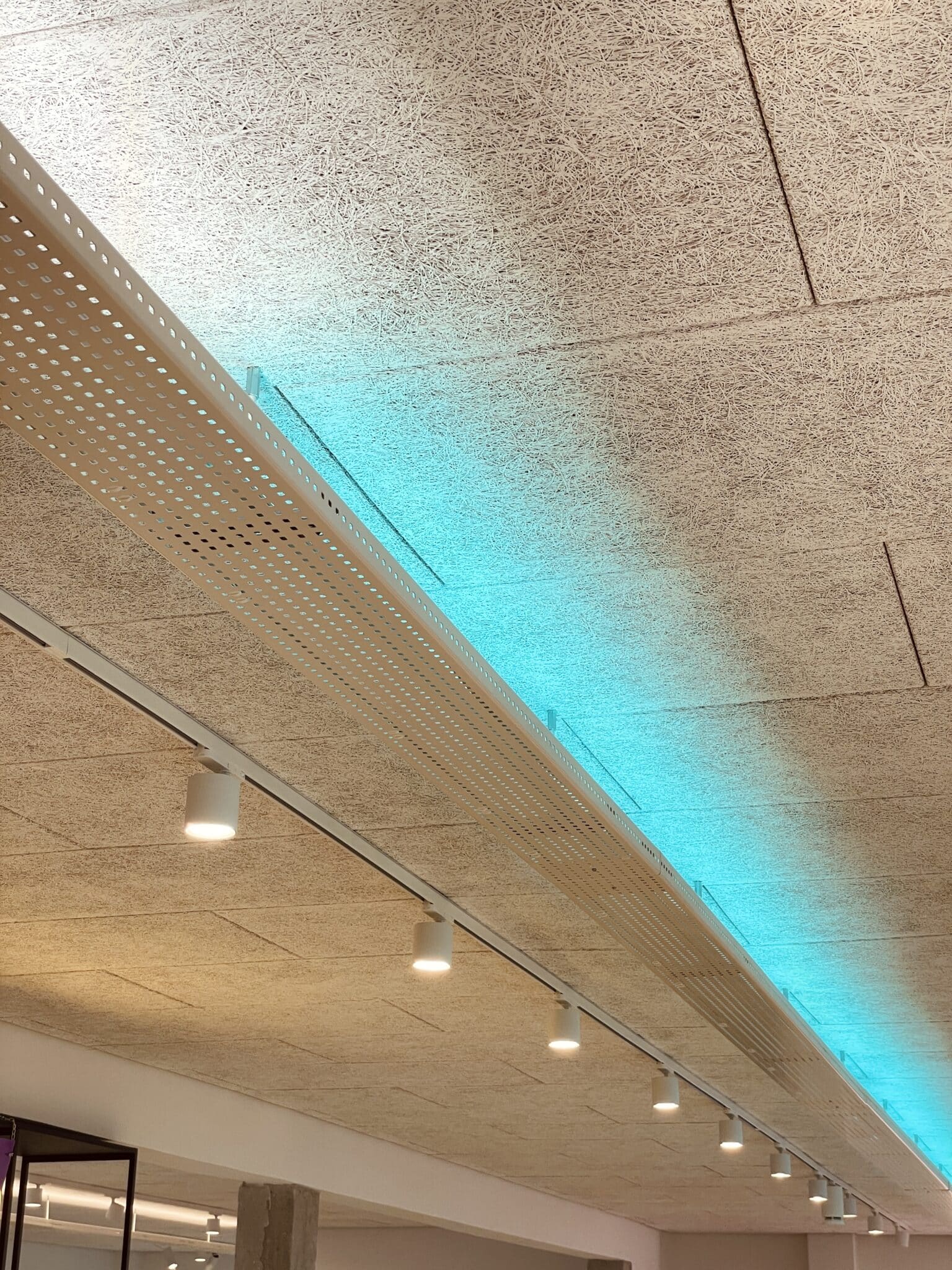 Showroomet byder på adskillige andre lysløsninger bla. En lysinstallation med LED-profiler, vægmonterede lineære armaturer i specialudvalgte RAL-farver samt profiler integreret i inventaret.